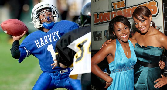 写真は実際にポップワーナー・フットボール出場時と、映画の完成披露試写に自分の役を演じたキキ・パーマーと一緒に写っている時のものです。